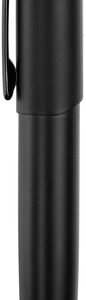 Metálico. Bolígrafo touch con apertura giratoria. Destape acero en la parte superior Cuerpo color negro mate. Puntera y clip color negro brilloso. Tinta negra. Estuche de cartón negro.