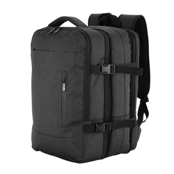 Mochila carry con con 3 compartimentos acolchados. Compartimento principal central expandible con cierre de apertura 360°, interior con cubierta de red con cierre perimetral y bolsillo con cierre horizontal. Compartimento posterior con cierre, bolsillo portanotebook de hasta 16 pulgadas con tira de seguridad con cierre de velcro y bolsillo plano . Compartimento frontal, exterior con bolsillo con cierre horizontal y bolsillo vertical con cierre impermeable, interior con bolsillos organizadores y un bolsillo de red. Asa acolchada y reforzada para mejor traslado. 2 correas de hebillas ajustables al volumen que se traslade. Espalda acolchada con red que permite ventilación. Tira para sujetar la mochila en la manija extensible de un equipaje de mano y bolsillo de seguridad con cierre. Correas acolchadas. Tiradores de cierre metálicos.